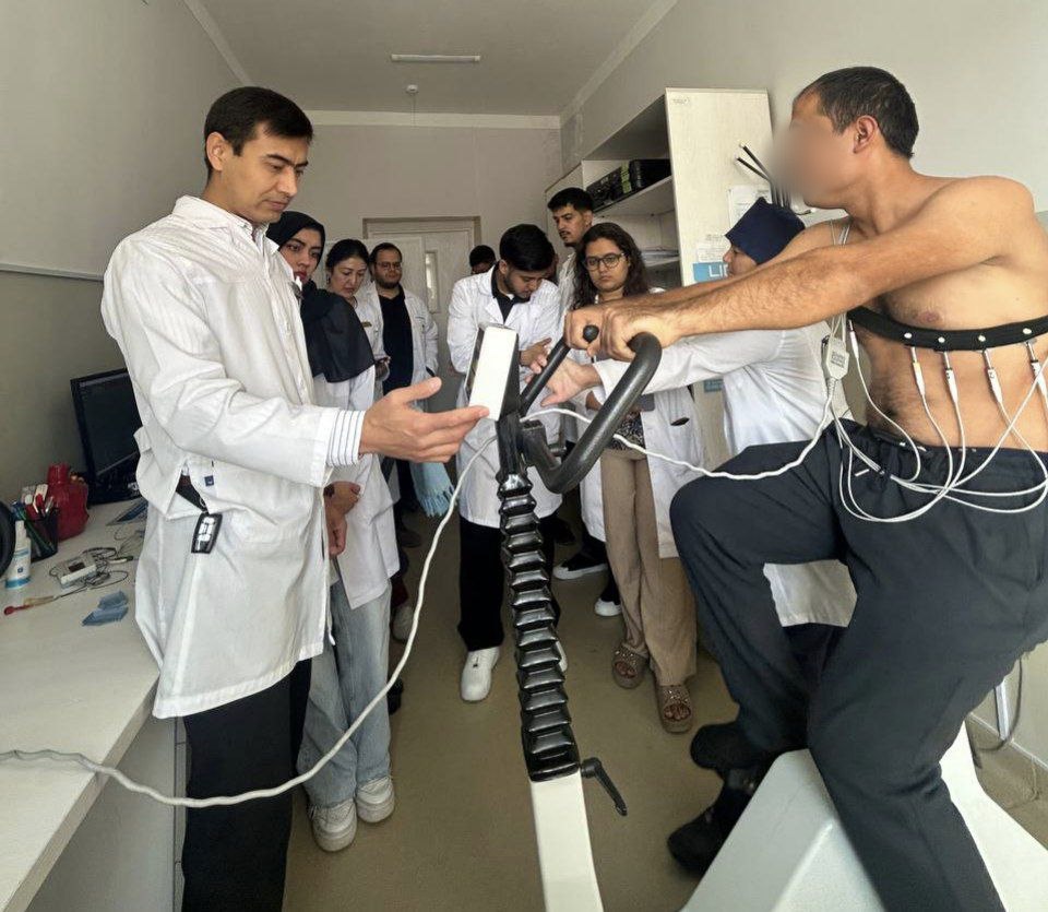 Хорижий талабалар “Юрак-қон томир тизими” модулини кардиореаниматолог Шоҳрух Ахмадалиев раҳбарлигида Республика ихтисослаштирилган кардиология илмий-амалий тиббиёт маркази Фарғона филиалида бошладилар.
